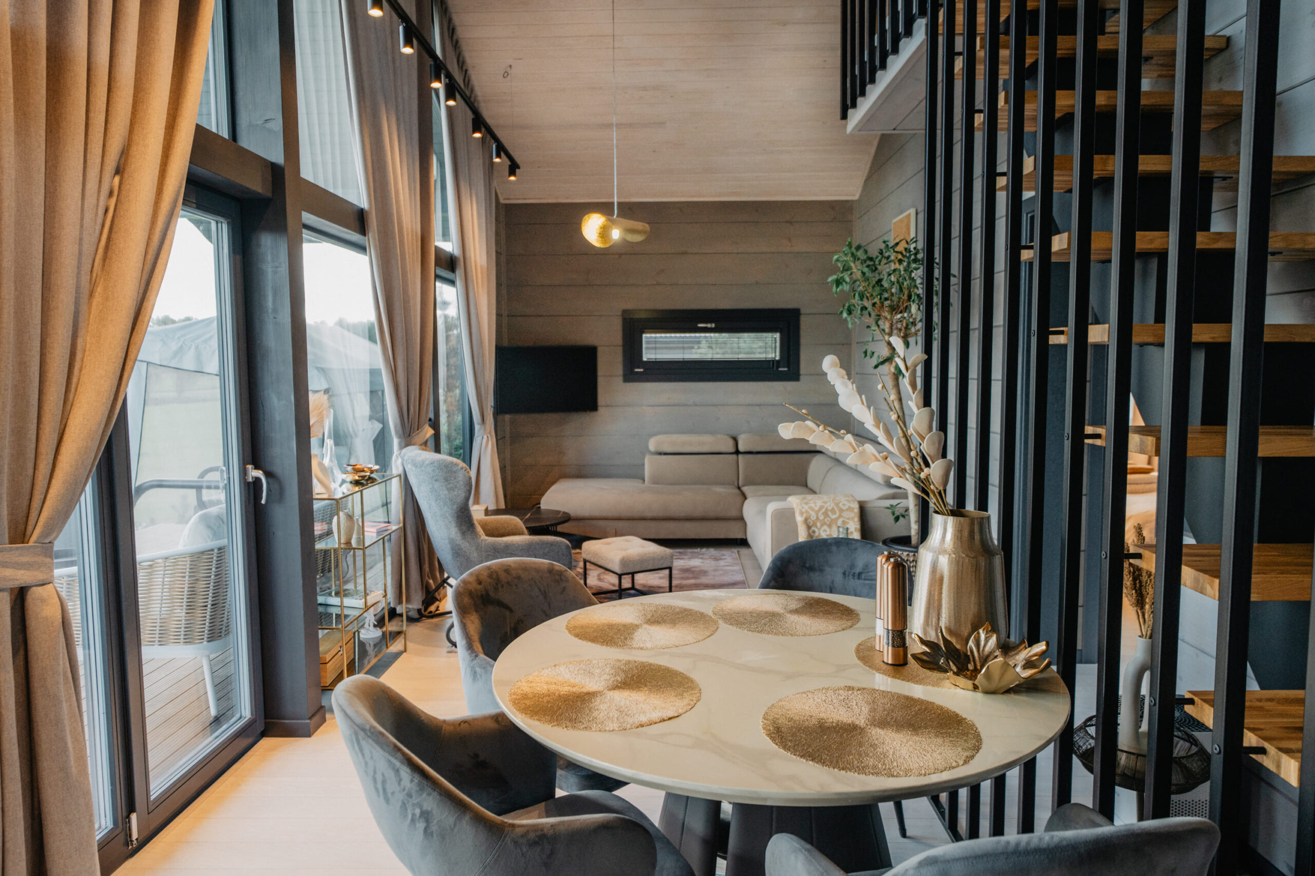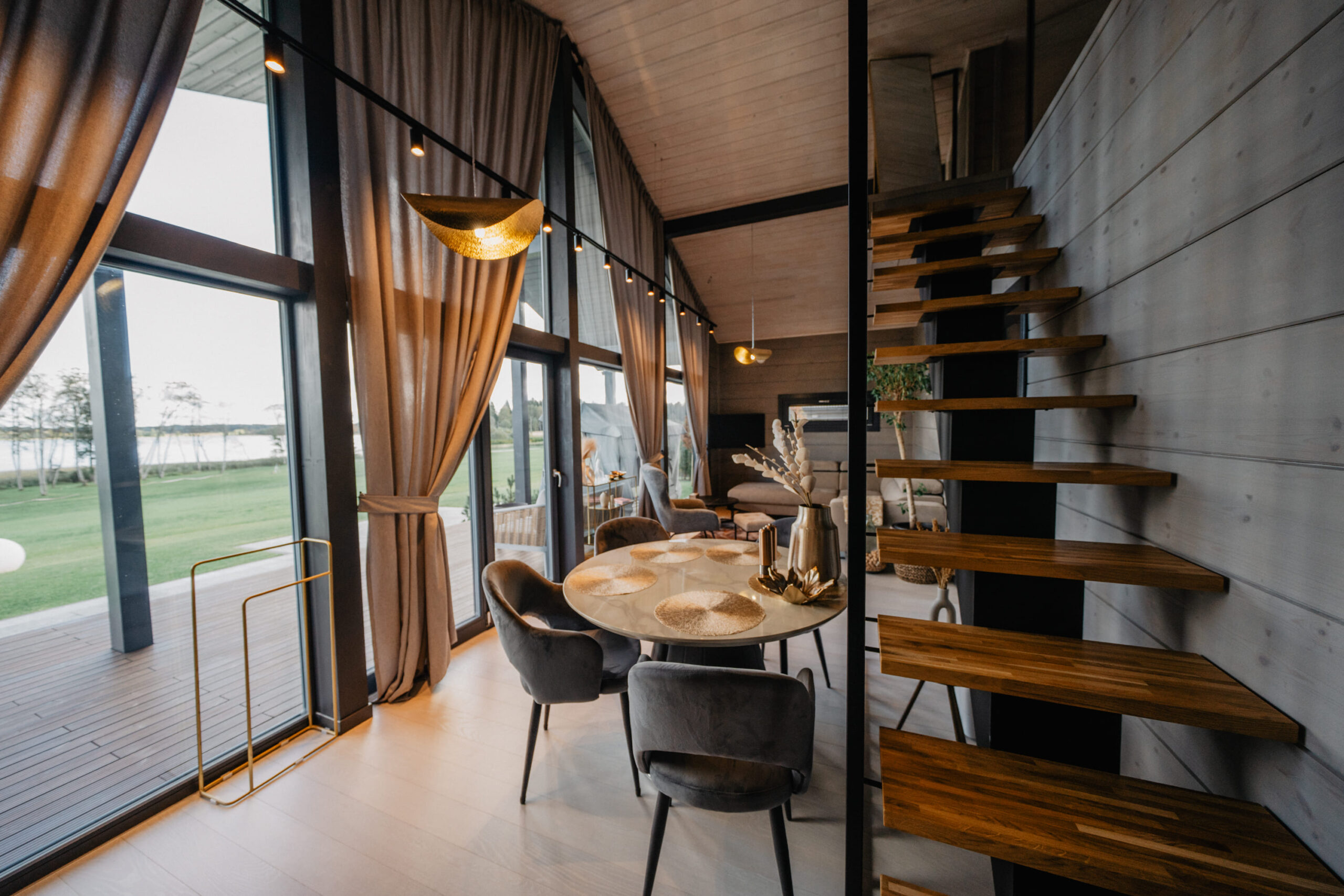 Your stay includes a private two-storey designer villa, breakfast in the restaurant and full access to the SPA and gym. Breakfast combines a buffet of hot and cold options with one dish from our special breakfast menu, enjoyed with a view of Lake Plaužu.